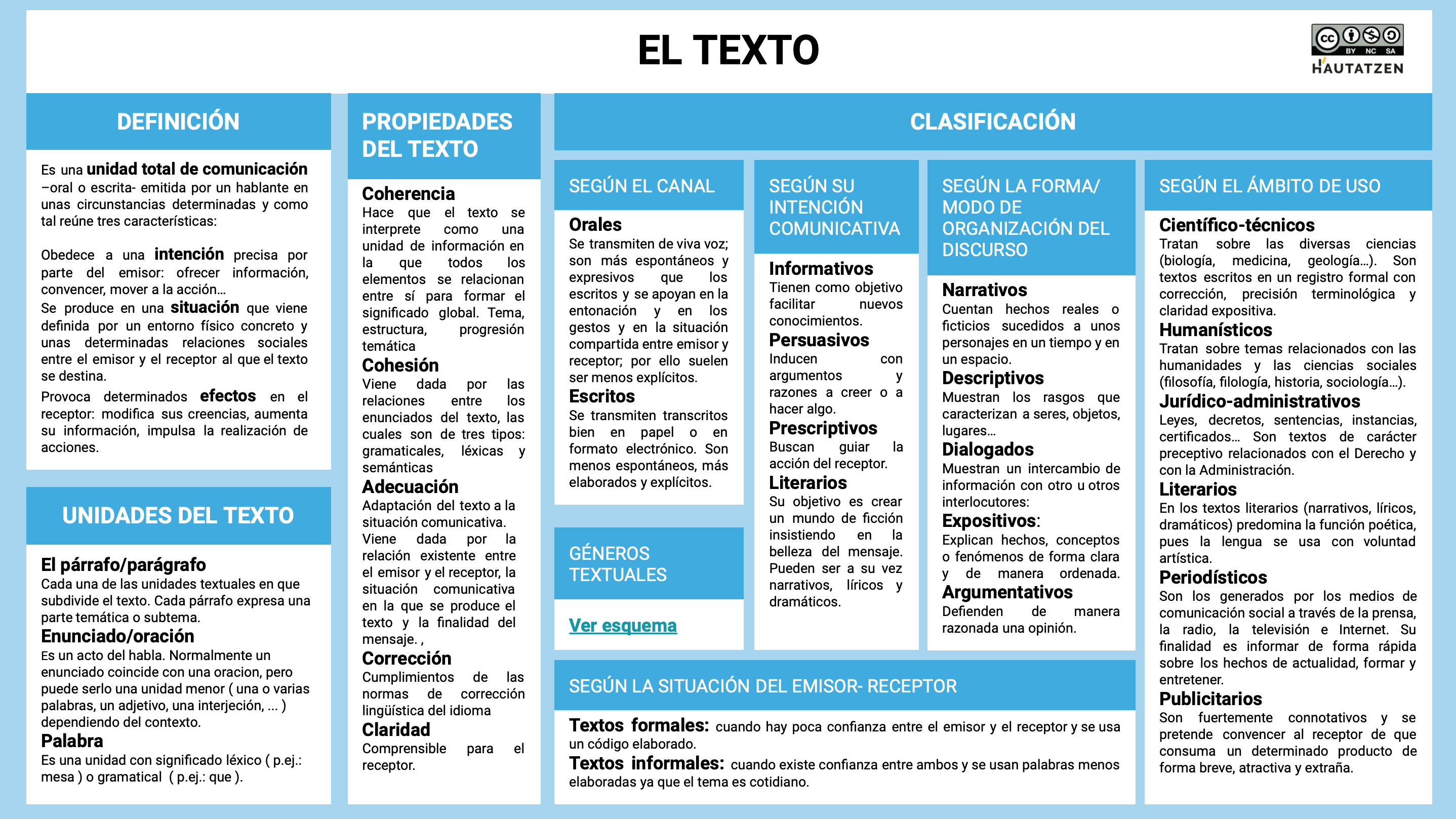 Todos los materiales organizados por categorías: lengua y gramática, literatura, textos, redacción, etc.